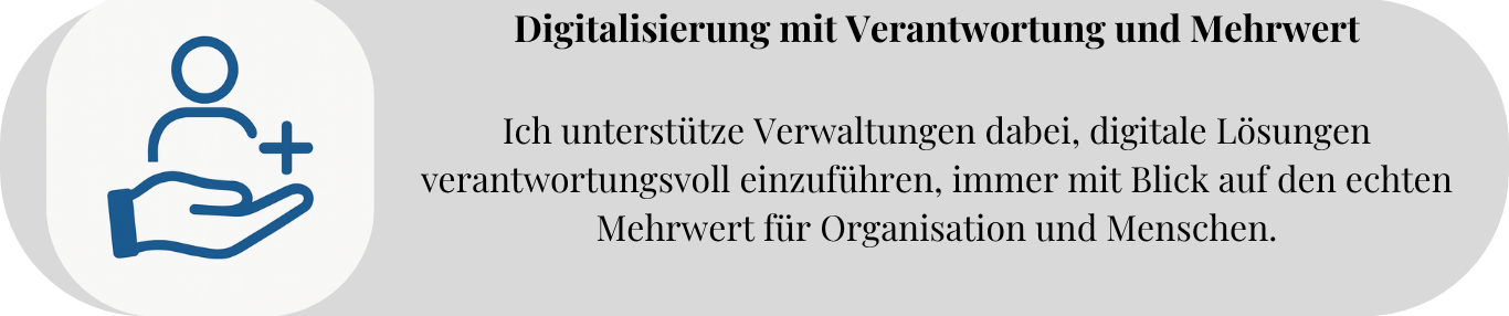 Gute Verwaltung braucht klare Prozesse, moderne Werkzeuge und Menschen, die bereit sind für Veränderung. Ich helfe dabei, genau das zu verbinden.